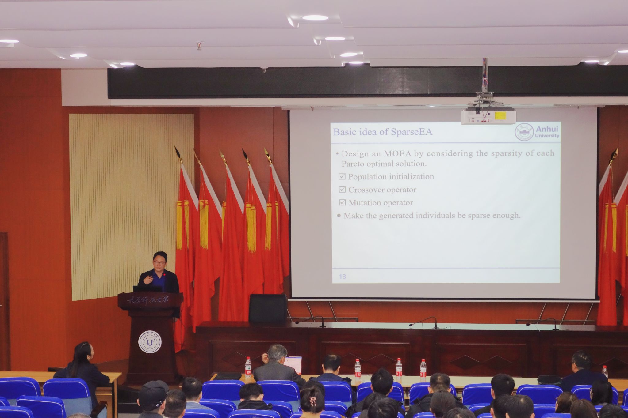 安徽大学张兴义教授围绕大规模多目标优化问题,重点介绍了团队在稀疏大规模多目标优化的研究成果。