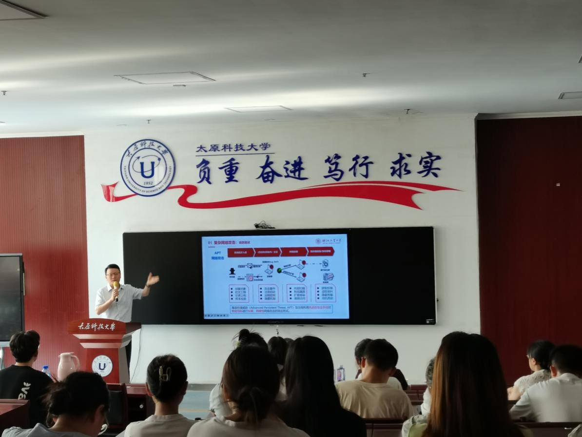 2023年7月10日,应太阳集团网tyc9728邀请,中国科学技术大学信息科学技术学院杨坚教授、浙江工业大学太阳集团网tyc9728陈铁明教授分别做了题为《网内智能技术创新与试验装置》《复杂网络攻击智能检测的关键技术研究与实践》的学术报告。报告由我院副院长孙超利教授主持,80余名师生参加并认真听取了本次学术报告。