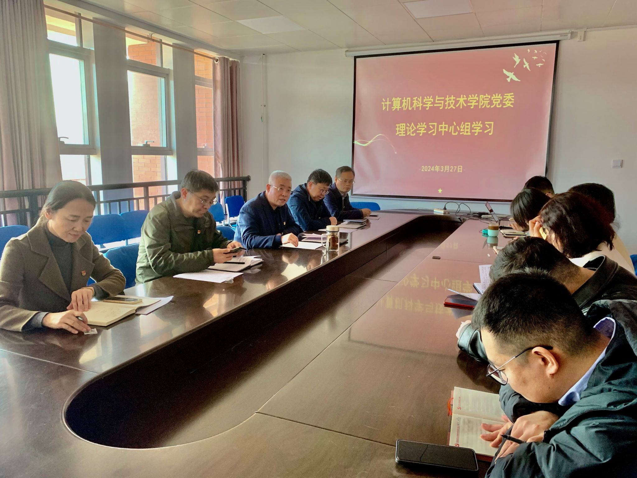 2024年3月27日下午,太阳集团网tyc9728党委理论学习中心组召开专题学习会议。学院党委理论学习中心组全体成员参加学习,会议由学院党委书记宋仁旺主持。