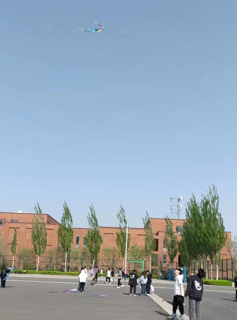 活动过程中,同学们精心准备、紧密配合,认真检查每个细节,使风筝在空中尽情翱翔,盘旋着飞向天空。微风习习,各组选手奔跑着、欢呼着,五彩缤纷的风筝扶摇直上,在空中争奇斗艳。同时,围观的同学们也不断地为参与队伍加油呐喊,使得现场气氛热烈起来。