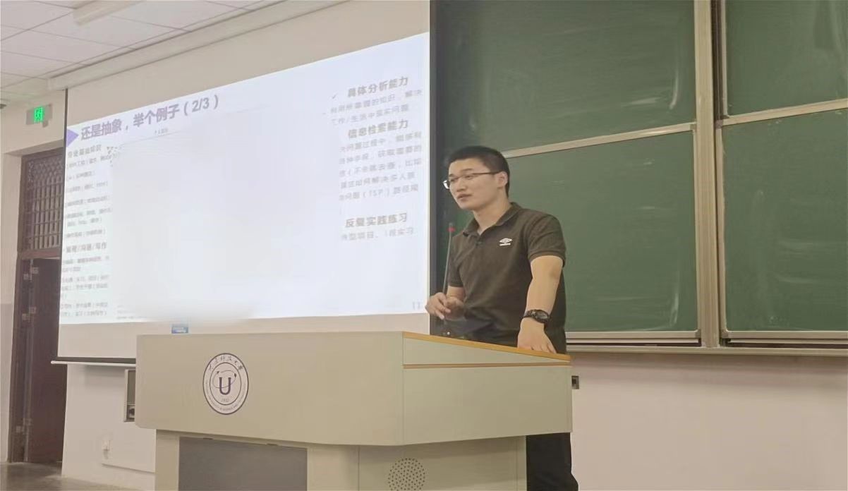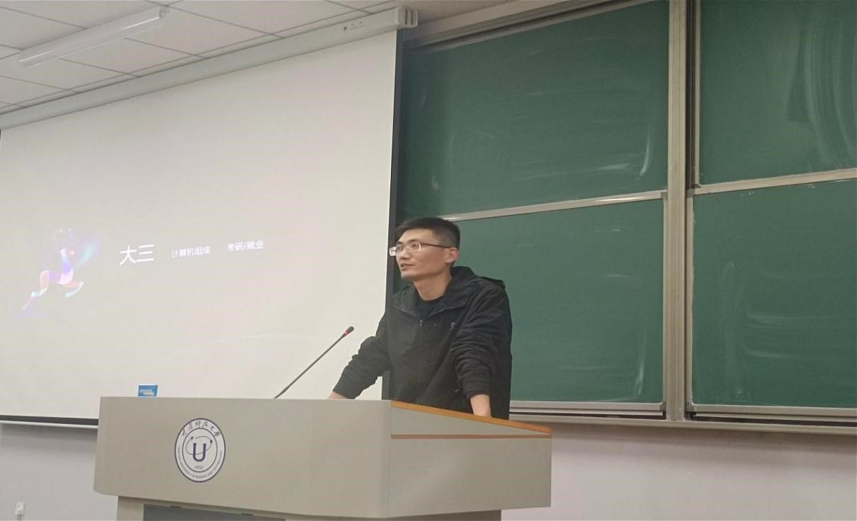 刘浩结合自身经历对计算机专业学生如何培养核心能力进行了分享。对于大家关心的考研还是工作问题,他形象地用戏曲行业谚语“活保人”和“人保活”作了比喻,讲述了如何理解、获得一份工作,并强调“一切选择没有好坏,适合最好”。