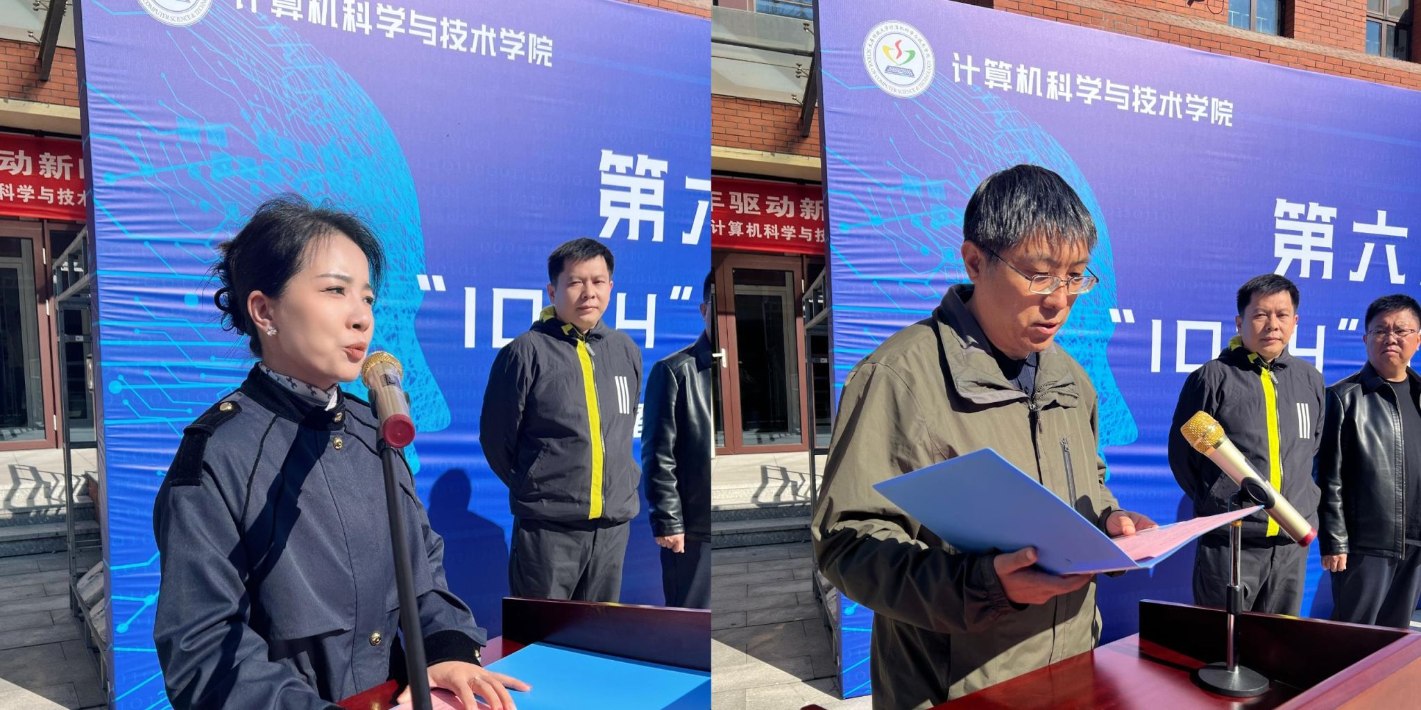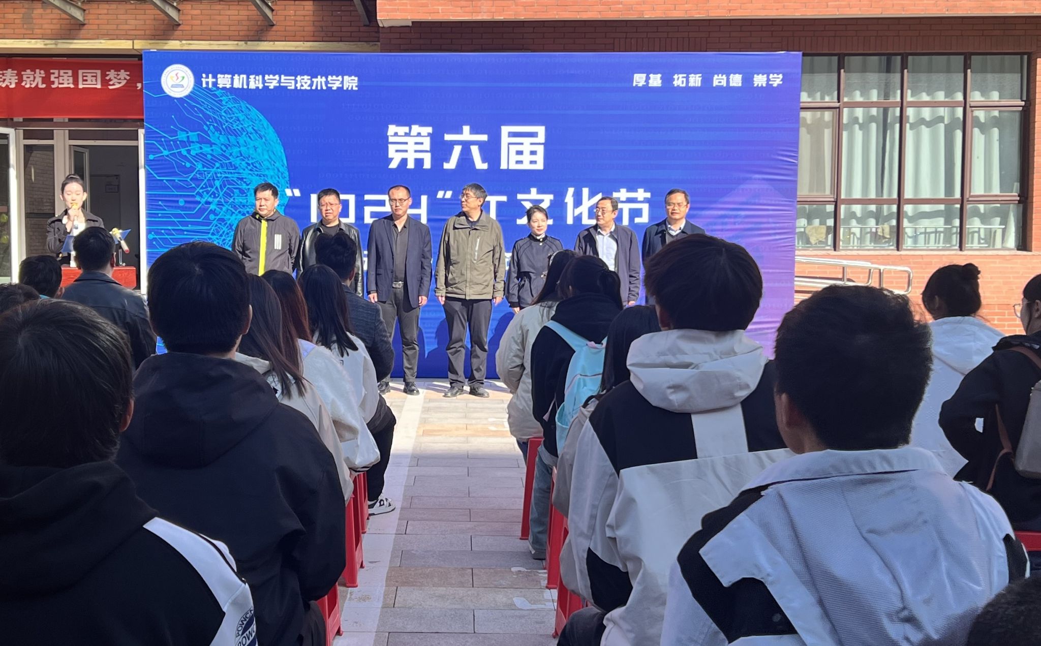阳光明媚,秋意正浓。2024年10月24日上午10点24分,我院第六届“1024”IT文化节在计算机楼前广场隆重开幕。校团委书记朱小庆、学院院长崔志华、副院长潘理虎、党委副书记裴小亮、山西信思智学教育科技有限公司总经理安振辉、太原英才汇硕信息科技有限公司总经理吴智军、北京千锋互联科技有限公司总经理丁飞以及我院辅导员、学生代表等百余人参加了开幕式。
