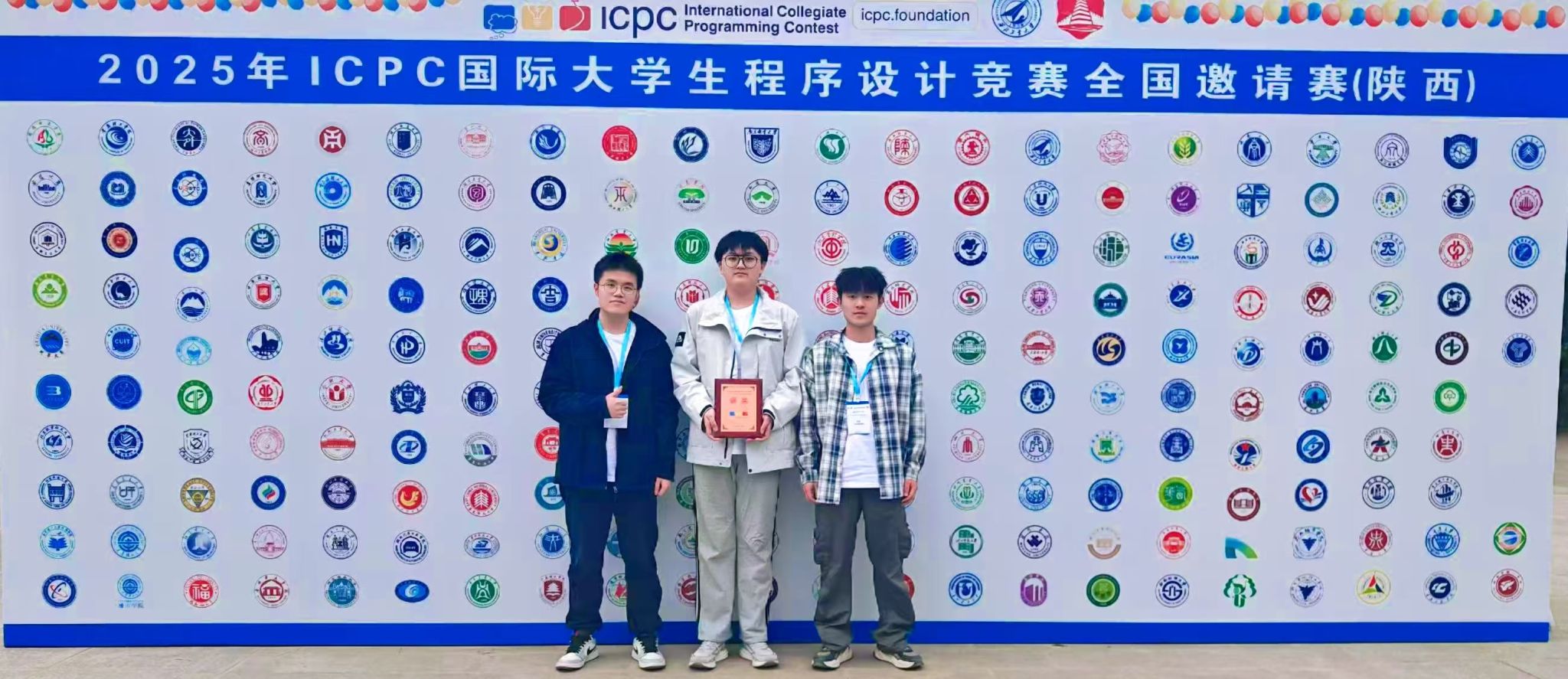 近日,2025年ICPC国际大学生程序设计竞赛全国邀请赛(陕西)成绩揭晓,经过激烈角逐,我院郭倩老师指导的本科生团队(丁健健、蔡鸿盛、陈君睿)斩获铜奖,这也是目前我院本科生在该赛事中荣获的最高奖项。