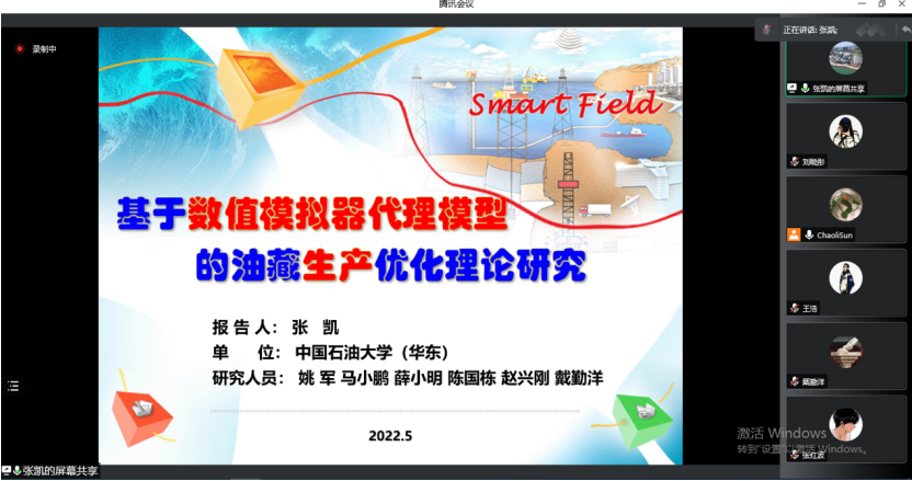 2022年5月9日,受学院孙超利教授的邀请,青岛理工大学副校长、中国石油大学(华东)油气智能开发技术研究中心团队负责人张凯教授做了线上学术报告,报告题目为“基于数值模拟器代理模型的油藏生产优化理论研究”,学术报告由孙超利教授主持,学院部分教师及研究生等60余人参加了学术会议。
