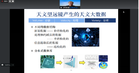 2022年9月29日,受学院杨海峰教授的邀请,中国科学院国家天文台罗阿理研究员为大家做了关于“大数据方法在天文研究中的应用”的线上学术报告。此次学术报告由杨海峰教授主持,计算机学院、电子学院100余名师生参加线上会议。