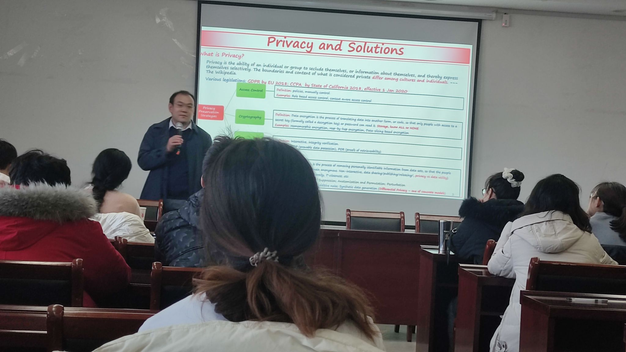 报告最后,陈金俊院士同老师、研究生同学进行了充分交流,并积极解答了同学们提出的问题。通过本次讲座,师生们了解了隐私保护前沿的研究方向,激发了同学们的科研兴趣,进一步开拓了学习视野,大家受益良多。崔志华教授做了总结发言,代表师生对陈金俊院士带来的精彩学术报告表示了感谢。