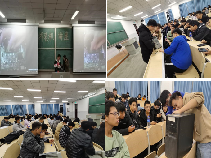 讲座伊始,活动负责人武晓勇先为此次讲座做简要说明。实践操作前,协会工作人员对设备进行了检查和调试,并用PPT的形式向大家呈现拆装机的具体操作步骤,指导同学们自己动手体验拆分和组装的过程,让理论知识得到了充分的实践。