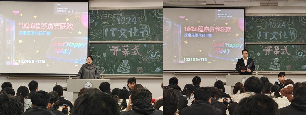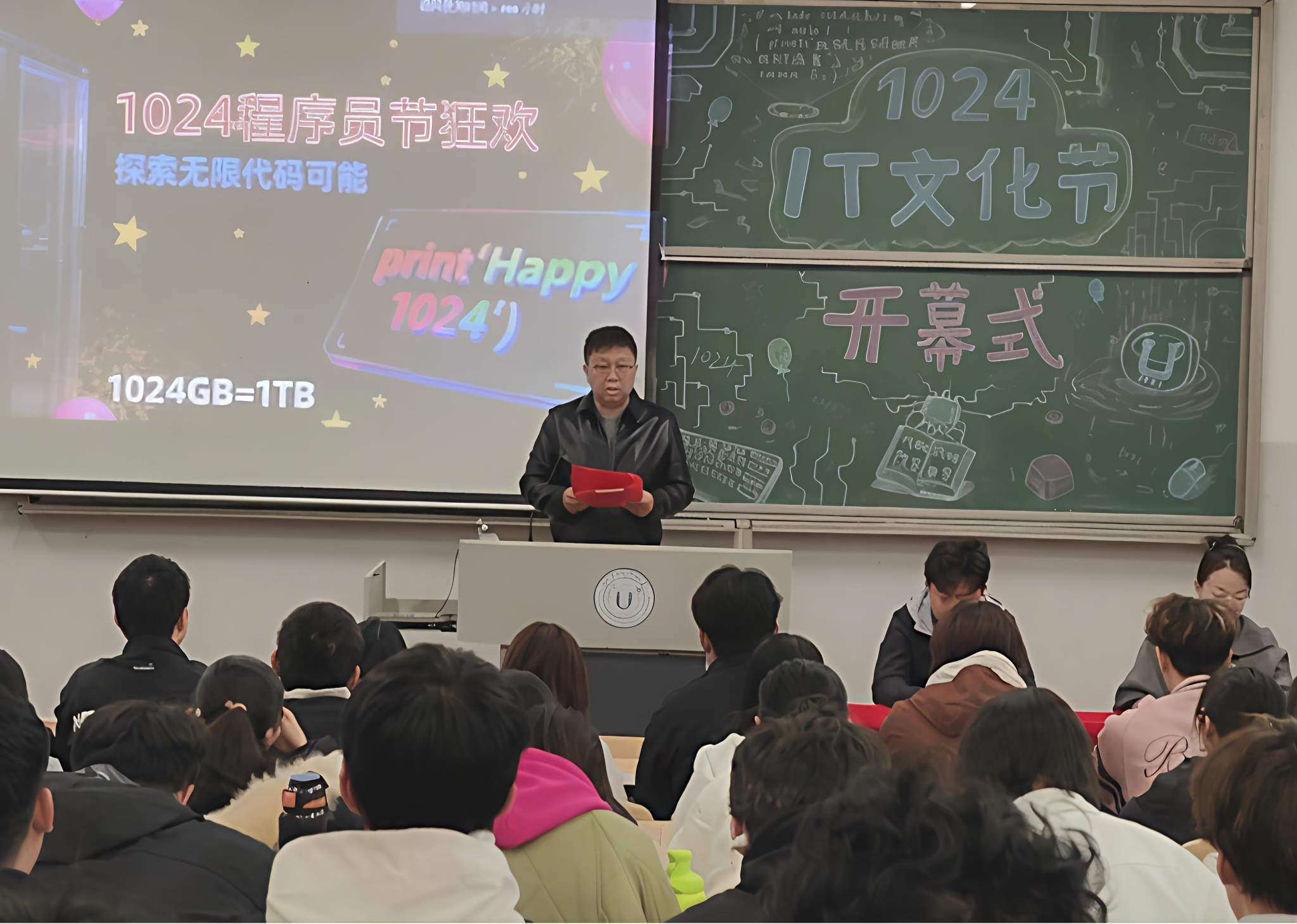 金秋十月,硕果盈枝。2025年10月24日,我院第七届“1024”IT文化节隆重开幕。学院党委副书记裴小亮、团委书记李明倩、全体辅导员及百余名学生代表参加了开幕式。